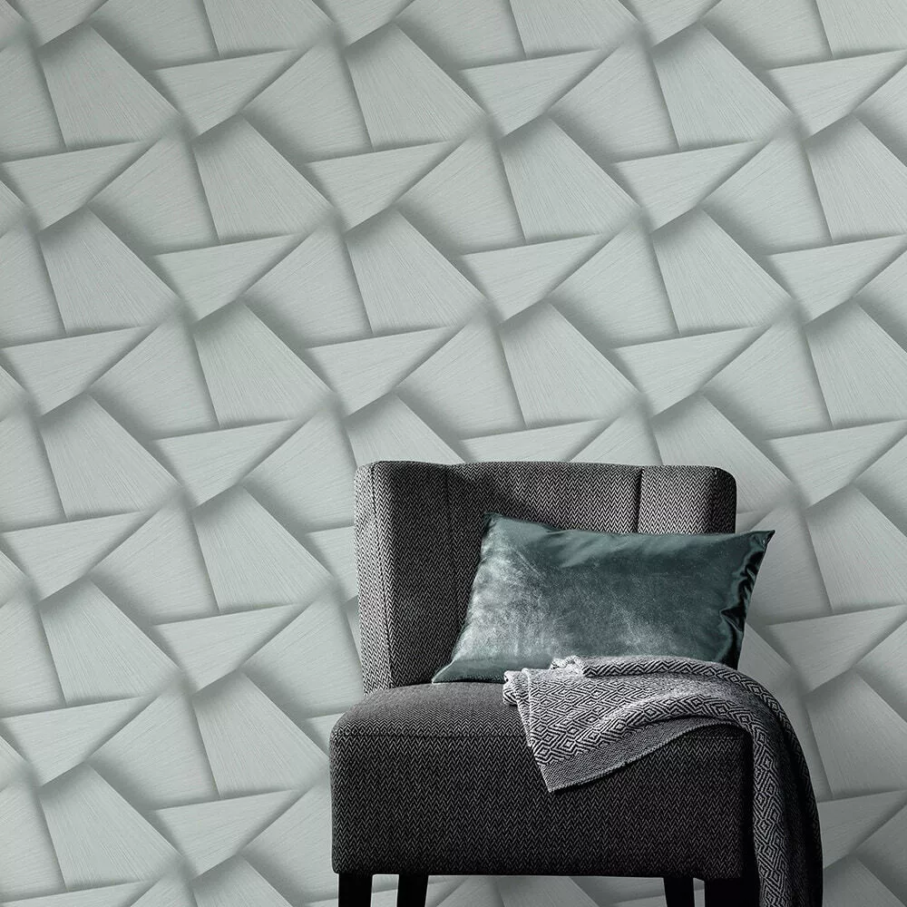3D hatású pasztell zöld színű geometrikus tapéta – modern , fókuszorientált falra