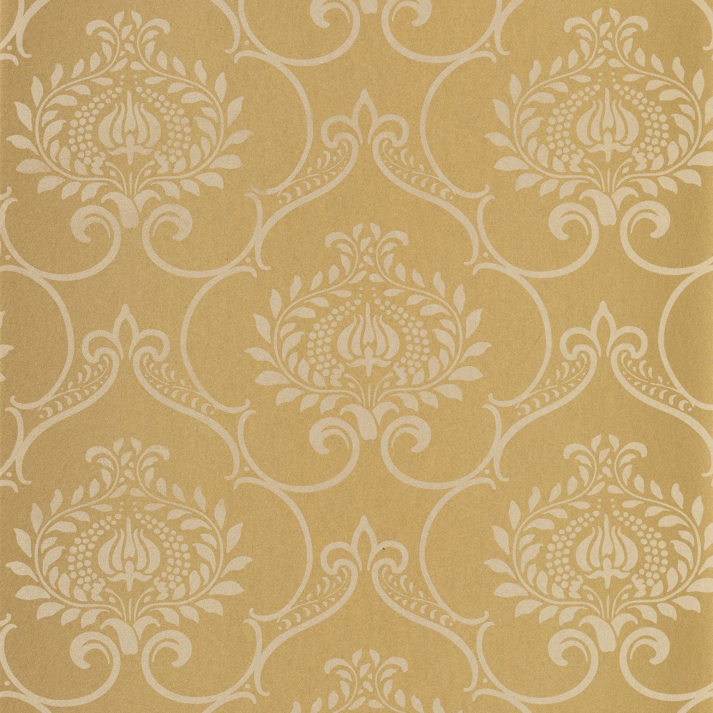 Ez a klasszikus damaszt mintás tapéta kifinomult eleganciát és időtálló stílust visz az enteriőrbe. Az arany színű alap és a finoman kontrasztos, világos ornamentika harmonikus, mégis karakteres megjelenést biztosít.