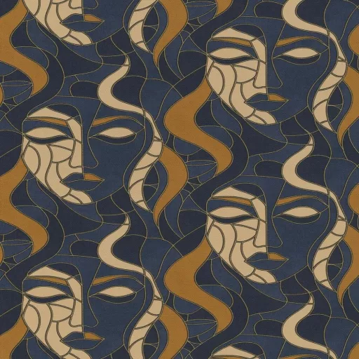 Art deco arc mintás tapéta – modern geometrikus design faldekor kék-arany színnel