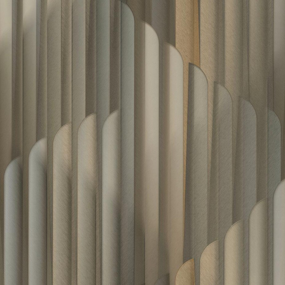 Barna-arany színű  geometrikus tapéta elegáns, íves art deco mintával. Modern, letisztult tapéta