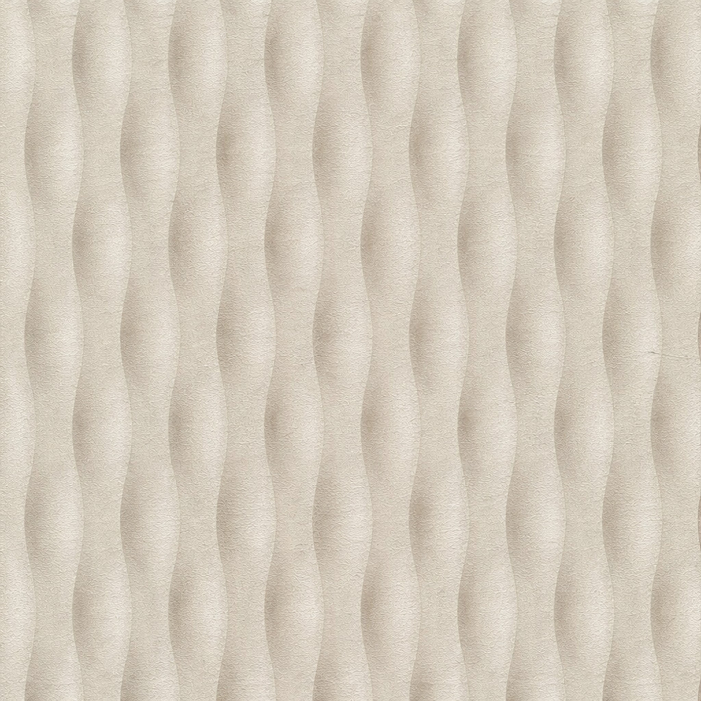 Ez a beige színű, hullámmintás tapéta modern és elegáns megjelenést biztosít bármely enteriőr számára. A finoman ívelt, vertikális hullámminta térbeli hatást kelt, miközben a visszafogott bézs árnyalat meleg, harmonikus atmoszférát teremt.