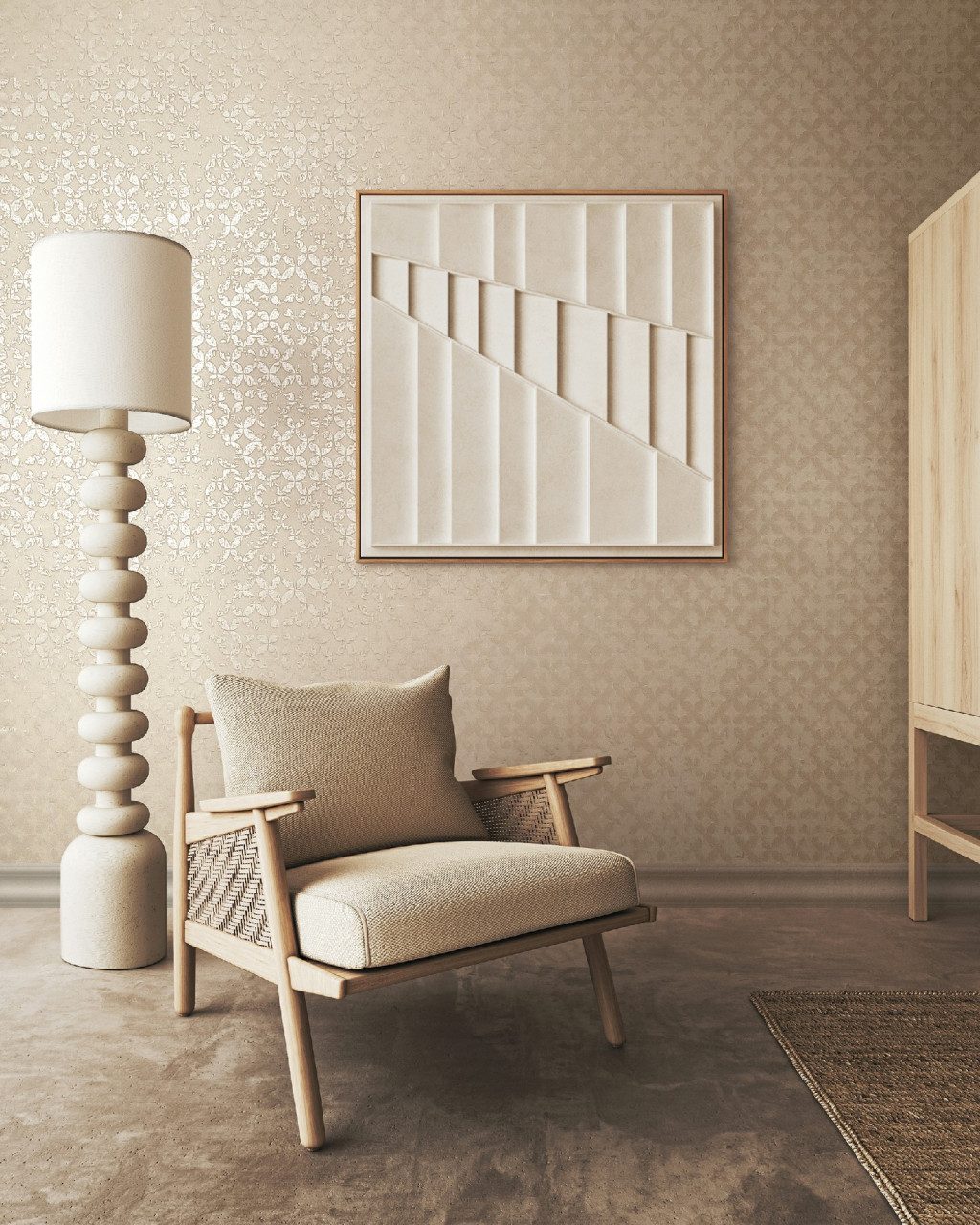 A krém árnyalatú dekor tapéta kiválóan illeszkedik klasszikus, modern és prémium enteriőrökbe egyaránt. Ideális nappaliba, hálószobába, étkezőbe vagy reprezentatív terekbe, ahol a finom részletek számítanak.
