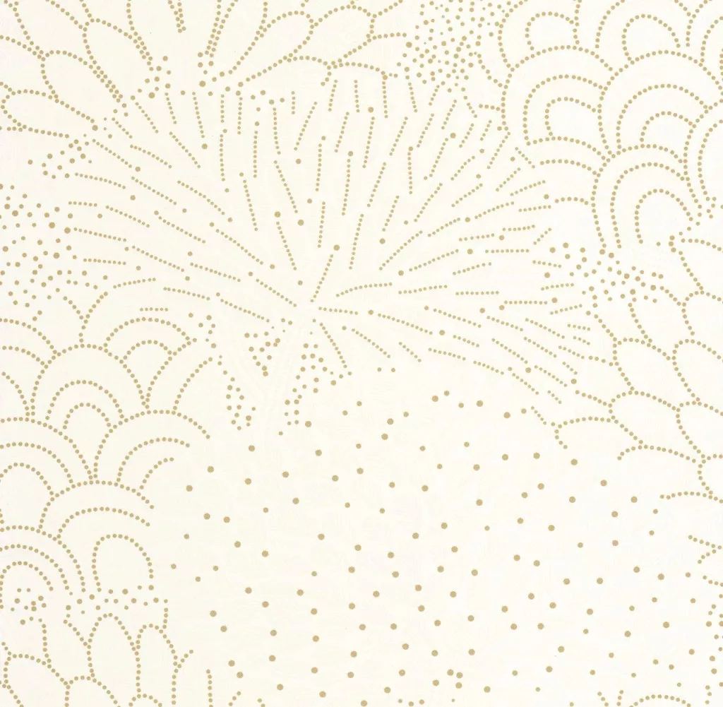 Elegáns, arany pötty mintázatú design tapéta modern és dekoratív mintával. Finom geometrikus virág motívumai különleges és stílusos faldekorációt teremtenek nappaliban, hálószobában vagy étkezőben.