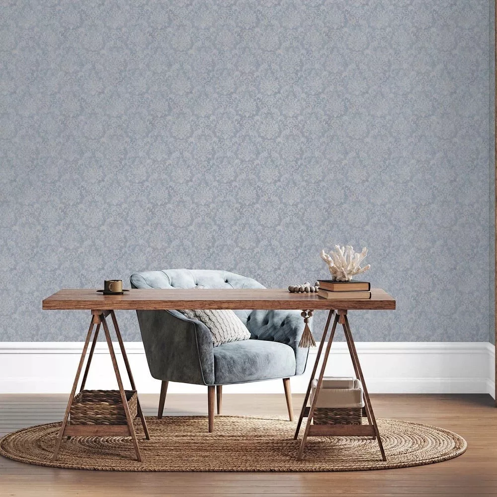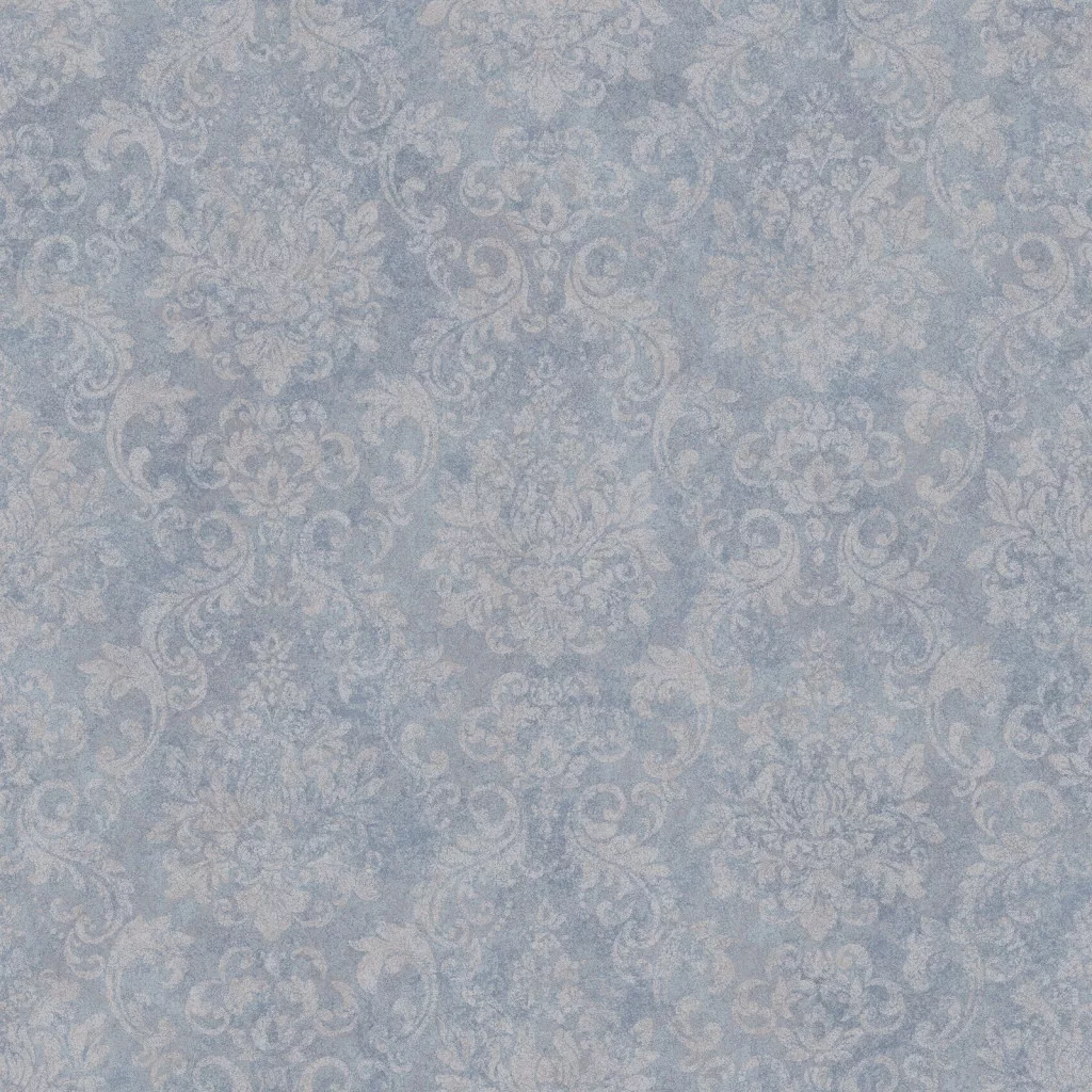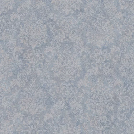 Elegáns damaszt mintás prémium tapéta kék alapon -ezüst csillogással