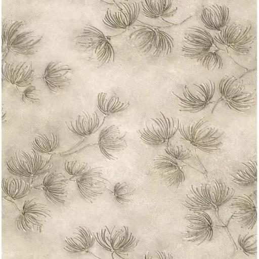 Elegáns, finoman strukturált felületű tapéta leveles mintával, amely exkluzív és modern luxus hangulatot teremt bármely enteriőrben. Tökéletes választás nappaliba, hálószobába vagy reprezentatív terekbe.