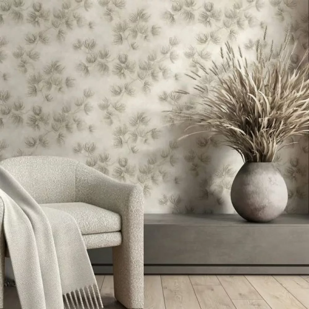 A textil hatású alap és a részletgazdag, természet ihlette motívumok harmonikus kombinációja meleg, otthonos, ugyanakkor exkluzív atmoszférát teremt. A minta nem túl harsány, így ideális választás azok számára, akik visszafogott, mégis luxus érzetű enteriőrt szeretnének kialakítani.