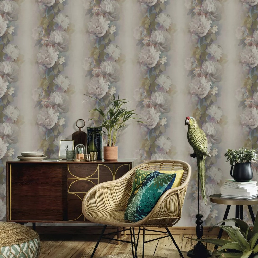 Elegáns mályva szinű virágmintás tapéta ,modern elegancia és a visszafogott romantika tökéletes egyensúlya