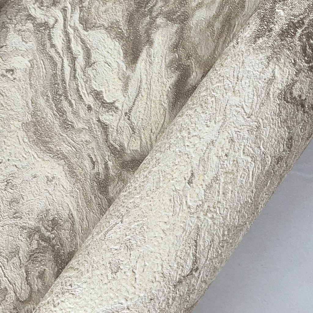Elegáns márványhatású tapéta finom, örvénylő kőmintával bézs színben
