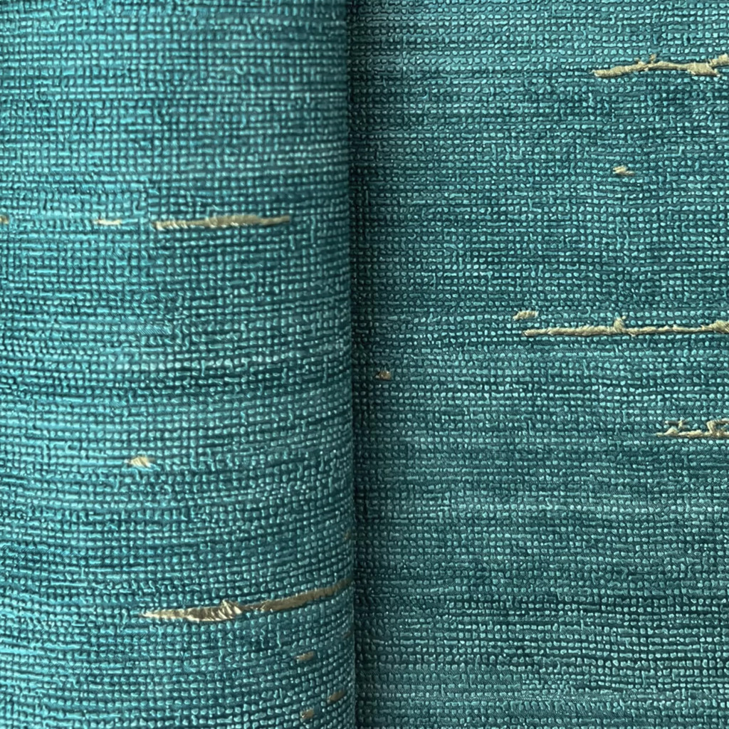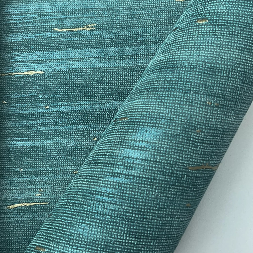 Elegáns textilhatású tapéta arany részletekkel, türkiz színben