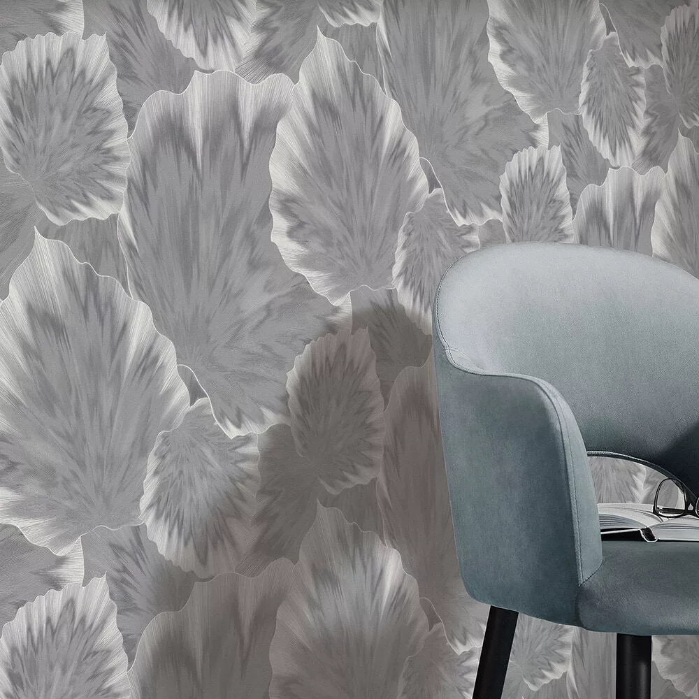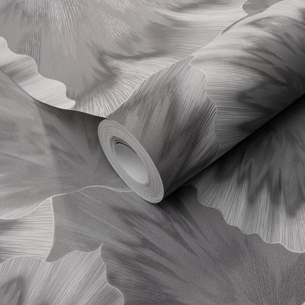 Elegáns virágmintás tapéta finom textúrával, szürke színben
