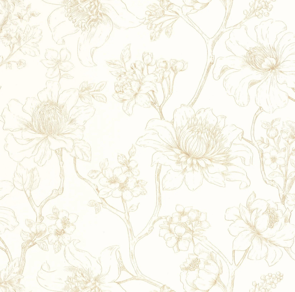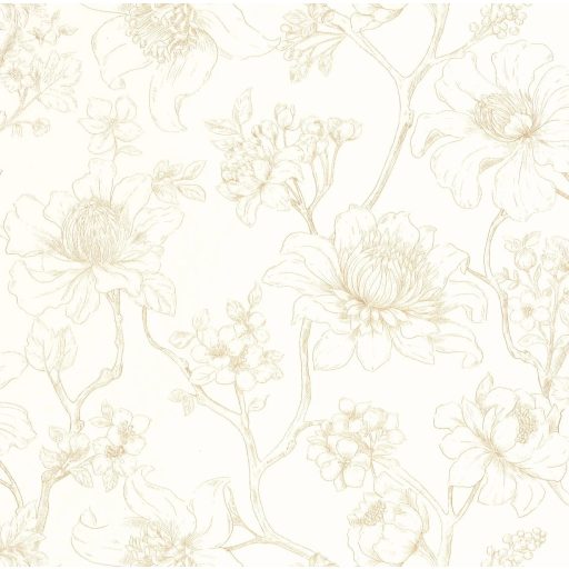 Elegáns virágmintás tapéta – klasszikus botanikus dekortapéta , törtfehér-arany színben
