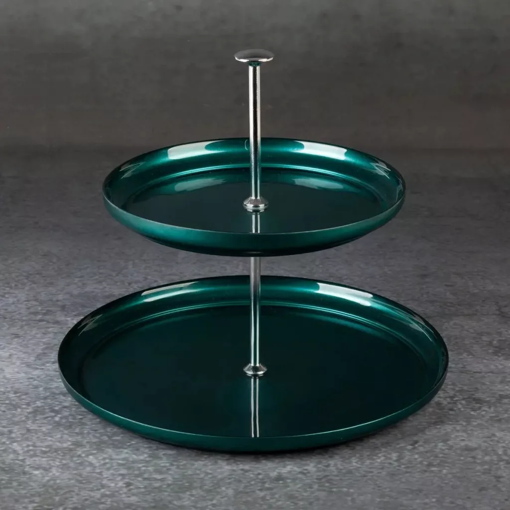 Emeletes kínáló tál, türkiz színben