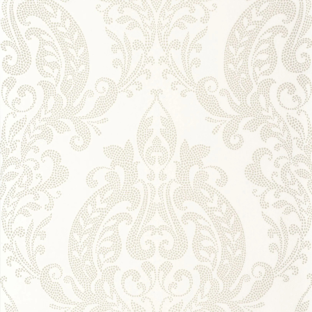 Fehér alapon arany tónusú, részletgazdag damaszt mintás tapéta, amely kifinomult és luxus hangulatot
