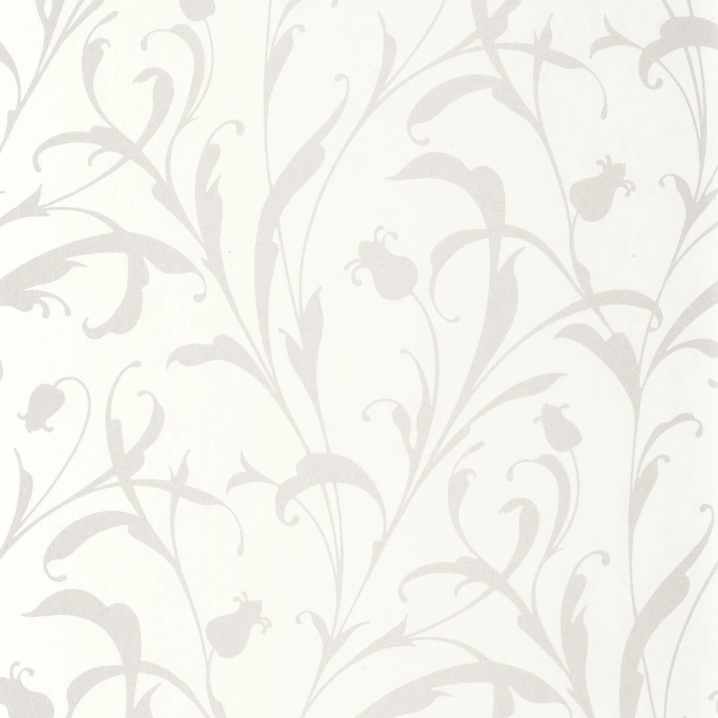 Fehér alapon gyöngyház tónusú, stilizált indás mintás tapéta, amely exkluzív, elegáns és karakteres megjelenést biztosít.