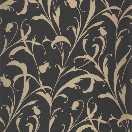 Fekete alapon arany tónusú, stilizált indás mintás tapéta, amely exkluzív, elegáns és karakteres megjelenést biztosít.