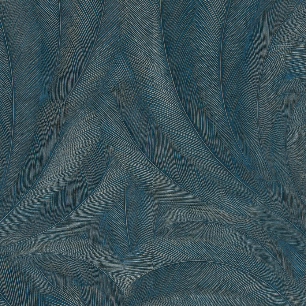 Finoman rajzolt toll mintás tapéta elegáns, strukturált felülettel kék árnyalatban