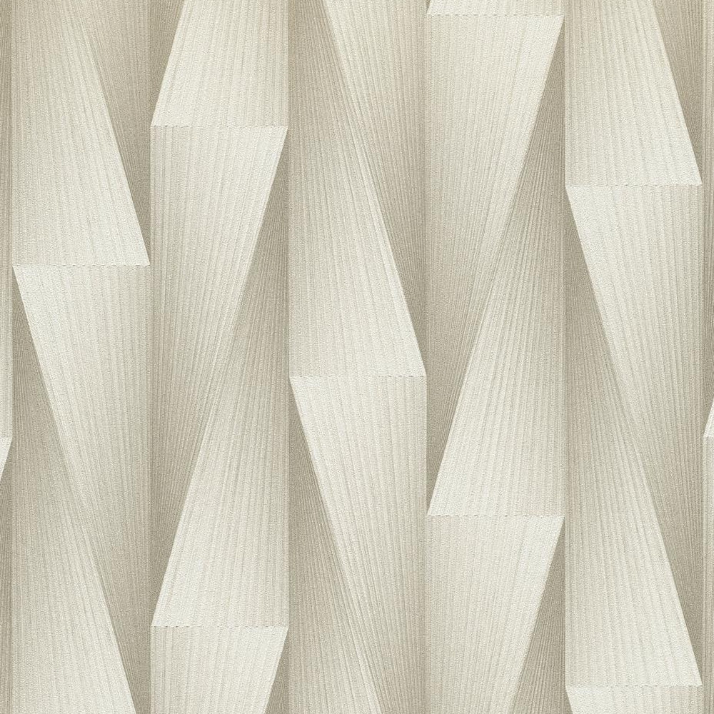 Krém szinű geometrikus tapéta – modern 3D fa hatású mintázat