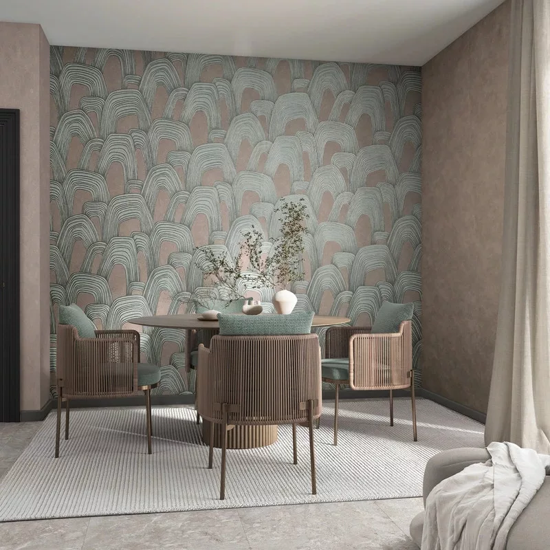 Így ideális megoldás például egy hangsúlyos levélmintás vagy geometrikus dekor tapéta mellé, ahol szükség van egy nyugodtabb, textúrált felületre.