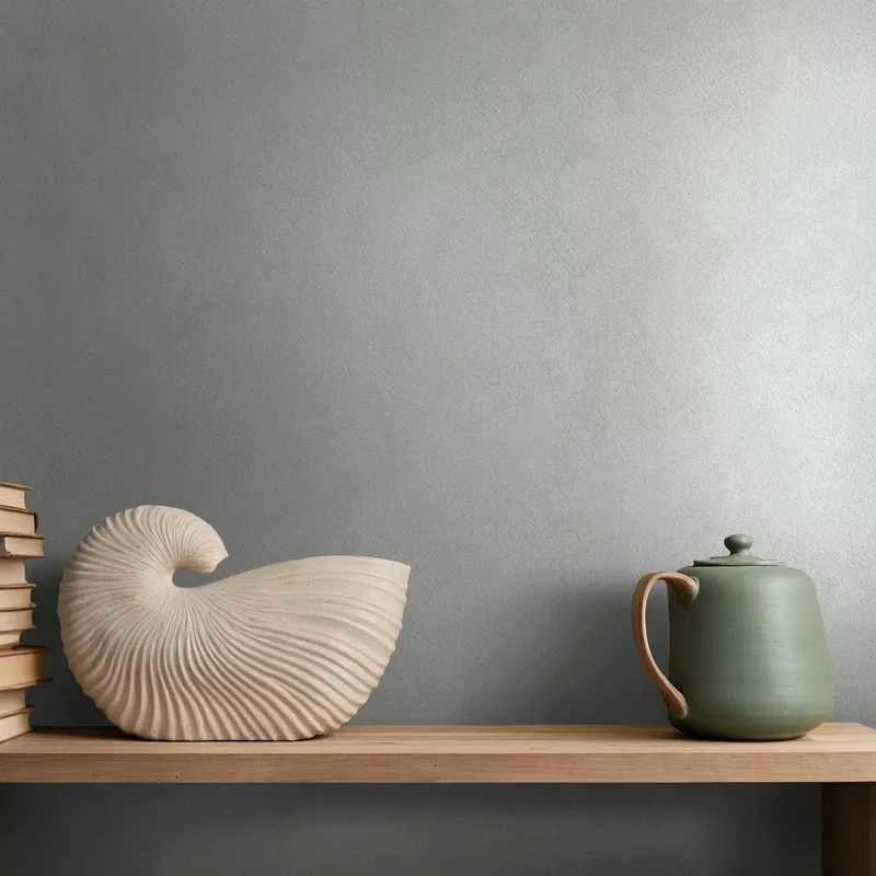 Így ideális megoldás például egy hangsúlyos levélmintás vagy geometrikus dekor tapéta mellé, ahol szükség van egy nyugodtabb, textúrált felületre.