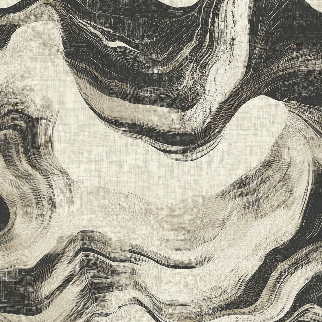 Modern absztrakt hullámmintás tapéta fekete és bézs árnyalatokkal, textilhatású felülettel