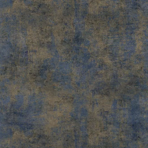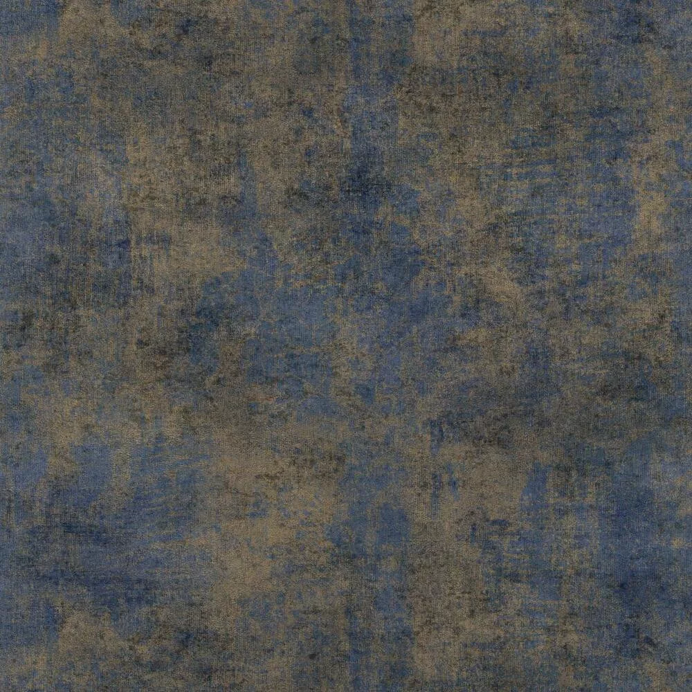 Modern betonhatású tapéta – dekorfestés és patinás vakolat hatású falburkolat , kék-arany színben