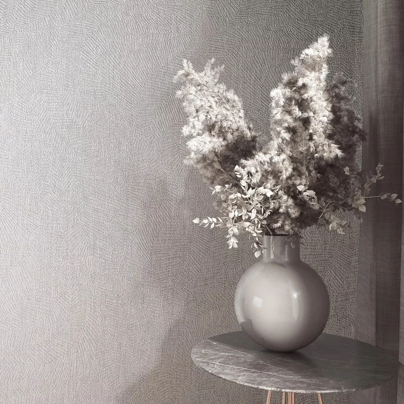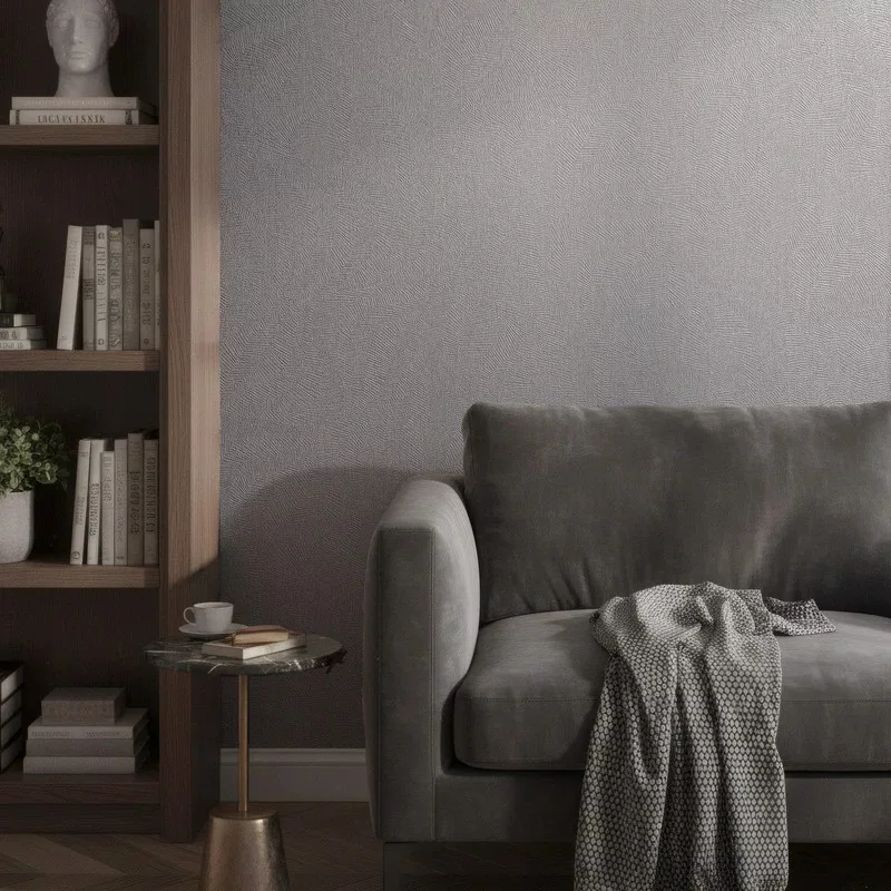 Modern szürke színű tapéta finom, geometrikus struktúrával, amely a kifinomult egyszerűség tökéletes példája. Ideális választás azok számára, akik nem szeretnének elköteleződni nagy, domináns minták mellett, mégis karaktert és meleg, otthonos hangulatot vinnének a térbe. A visszafogott minta elegánsan „felöltözteti” a falakat, miközben harmonikus és prémium összhatást teremt.