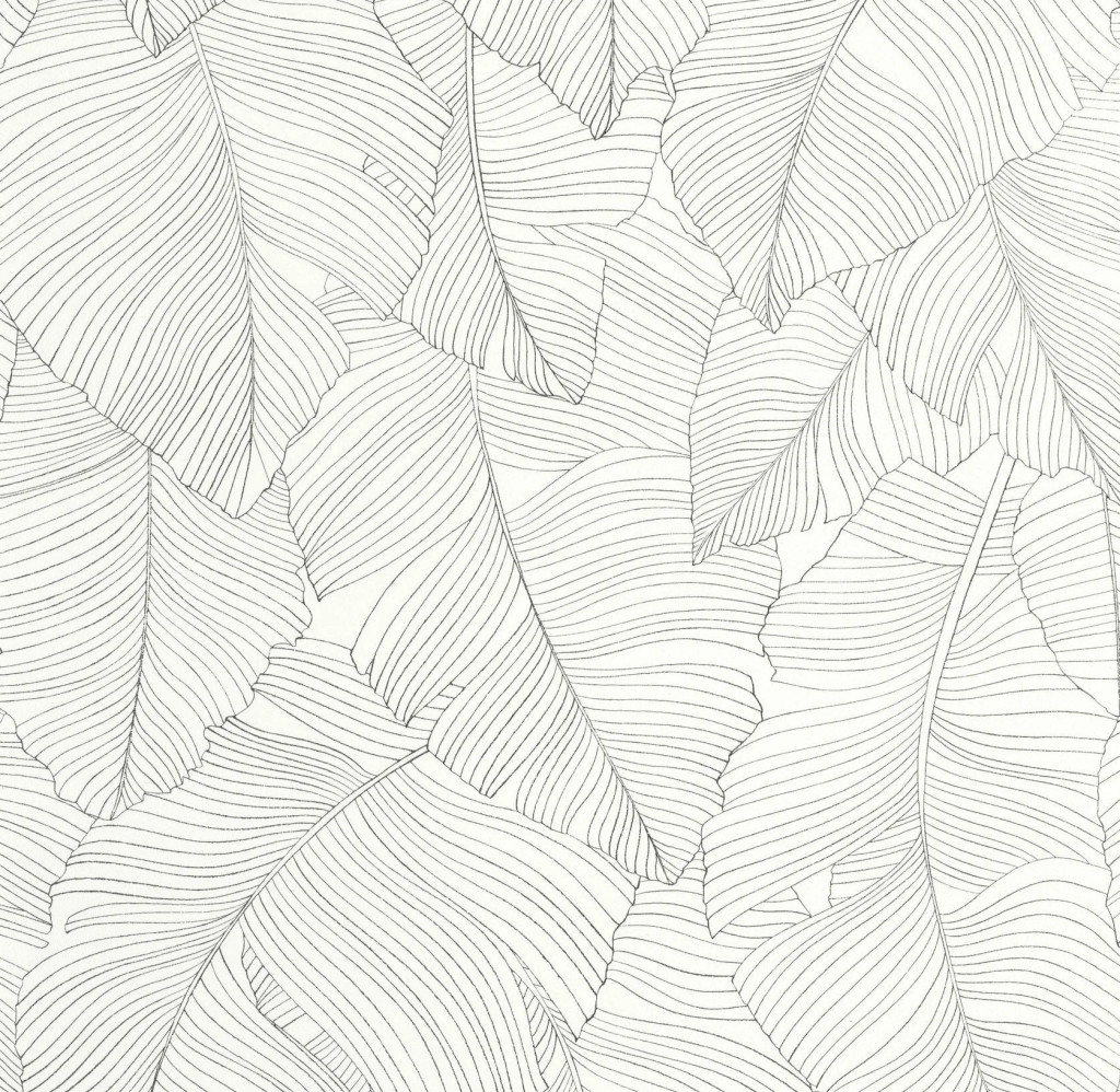 Ez a modern levél mintás tapéta finom grafikus vonalrajzával elegáns és természetes hangulatot teremt az enteriőrben. A nagy méretű levélmotívumok és a részletes vonalstruktúra különleges textúrát és vizuális mélységet ad a falaknak.