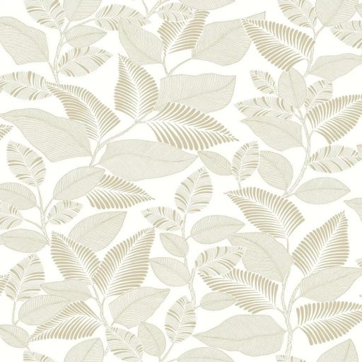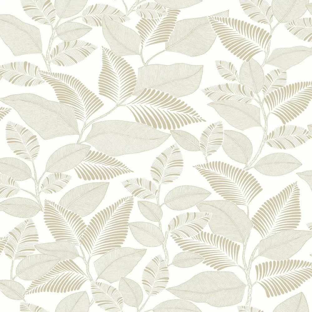 Modern levélmintás design tapéta – botanikus mintás dekor tapéta nappaliba és hálószobába beige színben