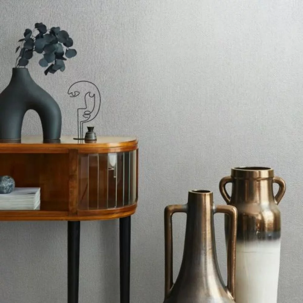 Modern szürke tapéta finom, geometrikus struktúrával, amely a kifinomult egyszerűség tökéletes példája. Ideális választás azok számára, akik nem szeretnének elköteleződni nagy, domináns minták mellett, mégis karaktert és meleg, otthonos hangulatot vinnének a térbe. A visszafogott minta elegánsan „felöltözteti” a falakat, miközben harmonikus és prémium összhatást teremt.