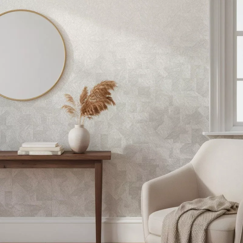 Modern törtfehér geometrikus tapéta – elegáns strukturált falfelülettel