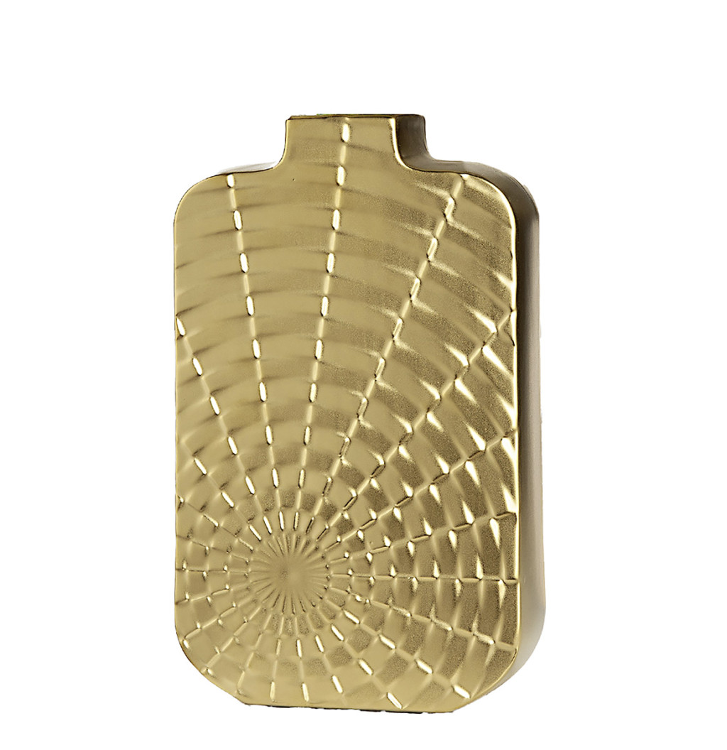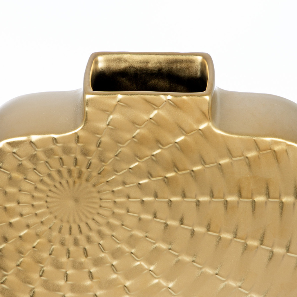 Modern,matt arany színű kerámia dekor váza geometrikus  mintázattal  8 x 19 x 30 cm