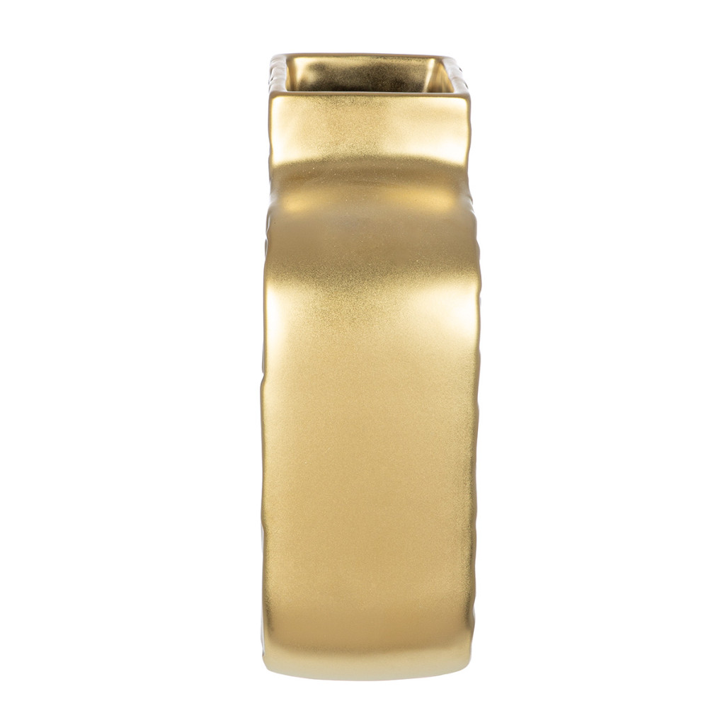 Modern,matt aranyszínű kerámia dekor váza geometrikus mintázattal 8 x 26 x 21 cm