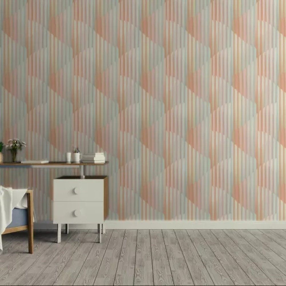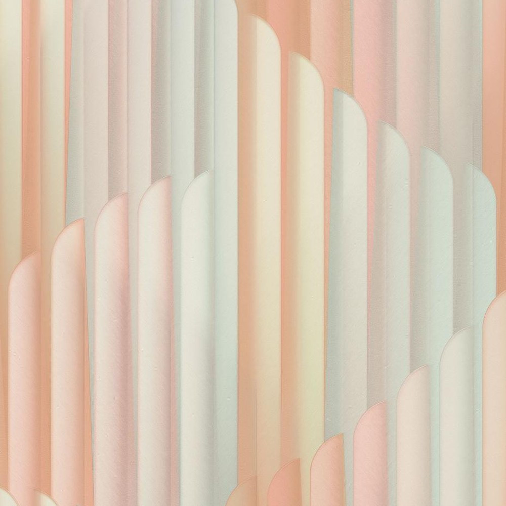 Pasztell rózsaszín-barack geometrikus tapéta elegáns, íves art deco mintával. Modern, letisztult tapéta