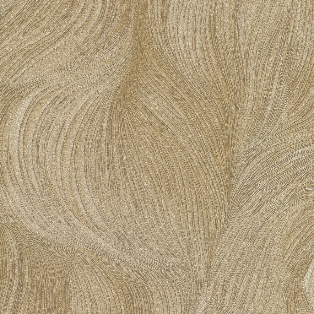Arany színű tapéta finoman ívelt, hullámos textúrával. Modern és exkluzív falburkolat nappaliba, hálószobába vagy elegáns enteriőrbe.