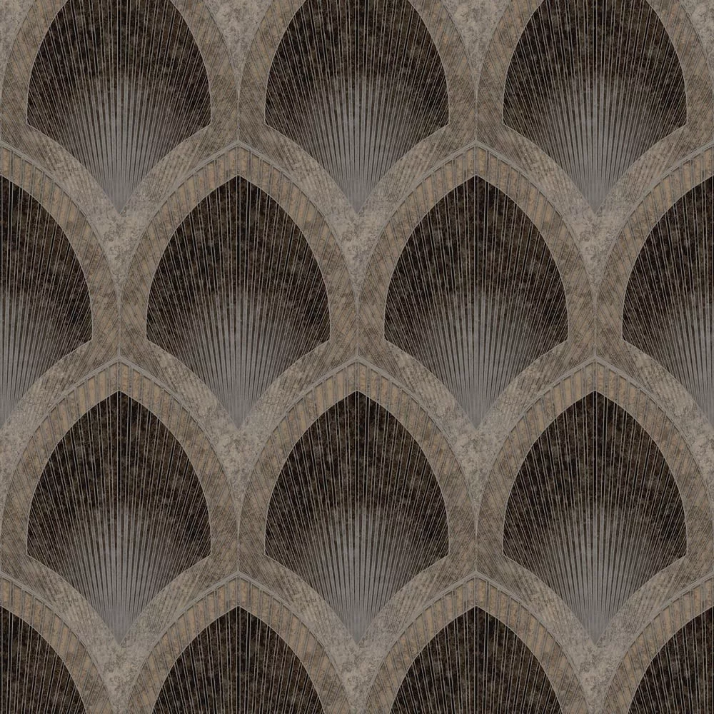 Prémium art deco íves mintás tapéta – elegáns geometrikus tapéta barna szinben selyemfénnyel