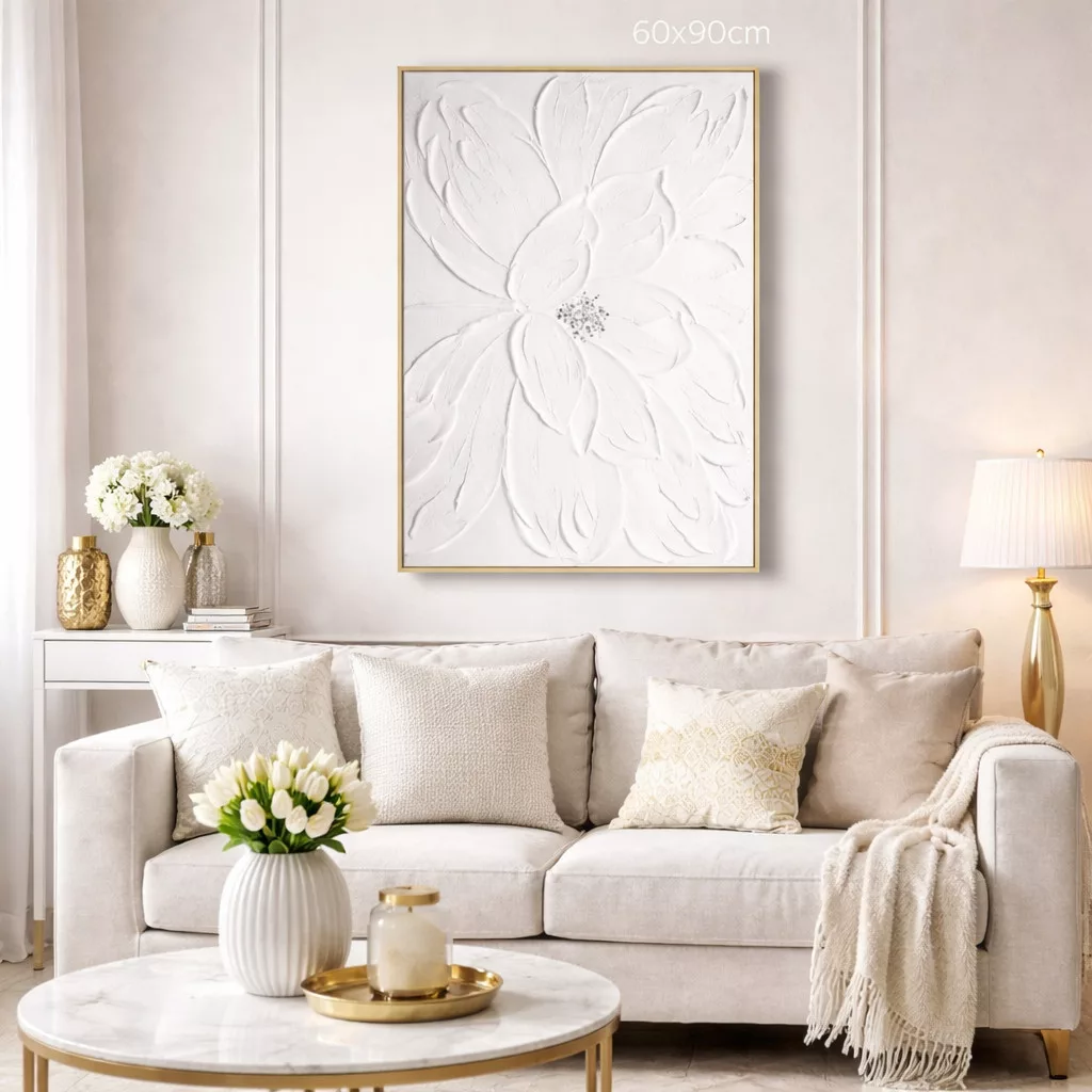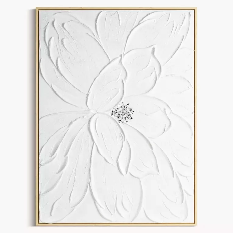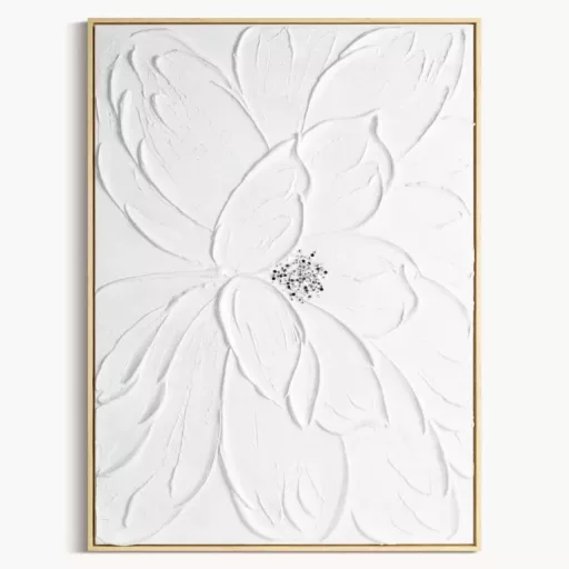 Ez a különleges fehér virág mintás falikép a modern és elegáns enteriőrök kifinomult dekorációs eleme.