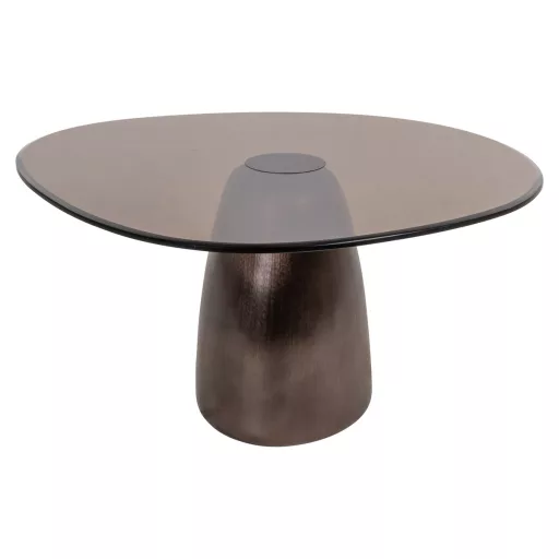Ez a modern prémium dohányzóasztal a kifinomult design és az időtálló elegancia tökéletes találkozása. A füstszínű üveglap légies, exkluzív megjelenést biztosít, miközben a bronz árnyalatú fém talp karakteres és stabil alapot ad az asztalnak.