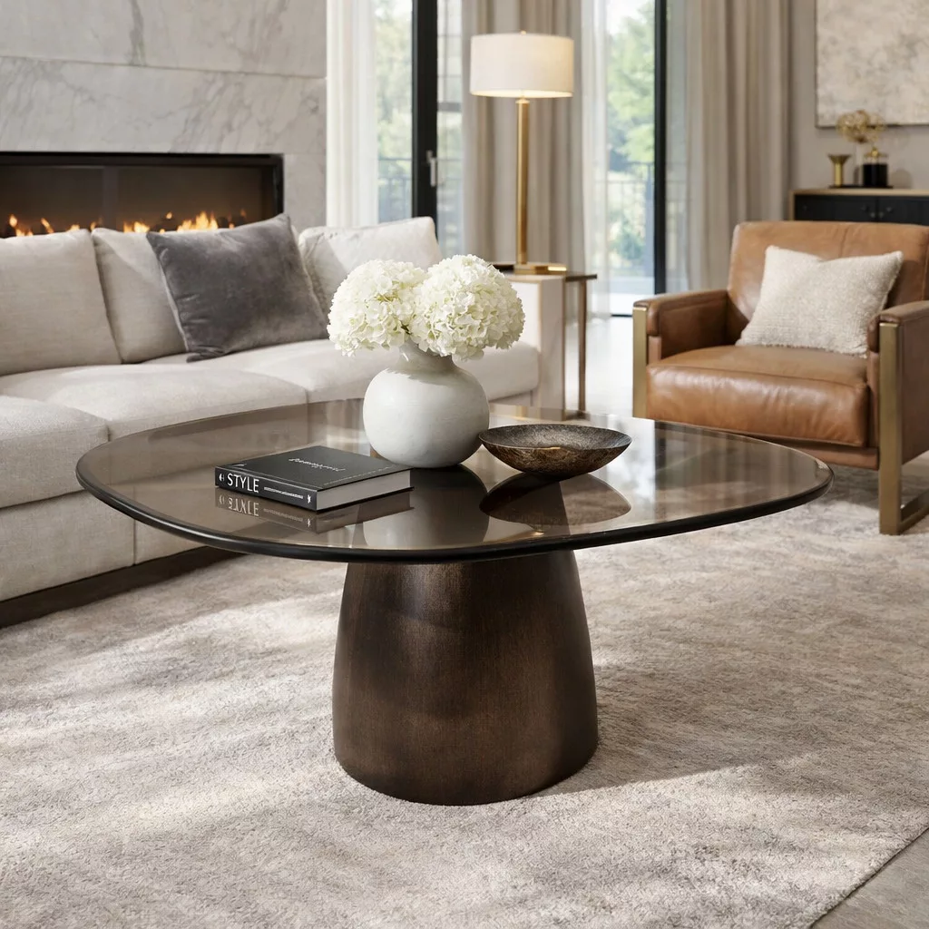 A lekerekített, lágy formavilág harmonikusan illeszkedik a modern, minimalista és luxus nappali enteriőrökbe, legyen szó világos, bézs tónusú vagy sötétebb, elegáns térkialakításról. A füstüveg felület különleges fényjátékot hoz létre, amely tovább emeli az enteriőr prémium összhatását.