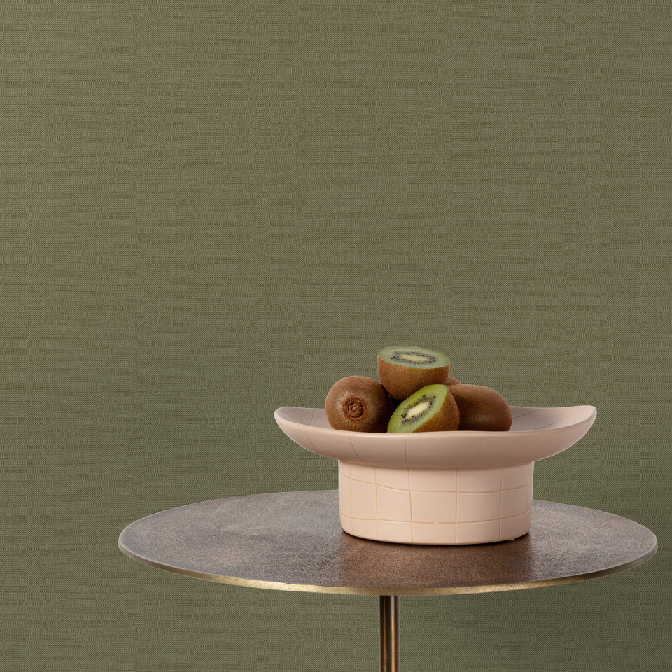 Prémium lenvászon hatású tapéta – elegáns textil minta, olivazöld színben