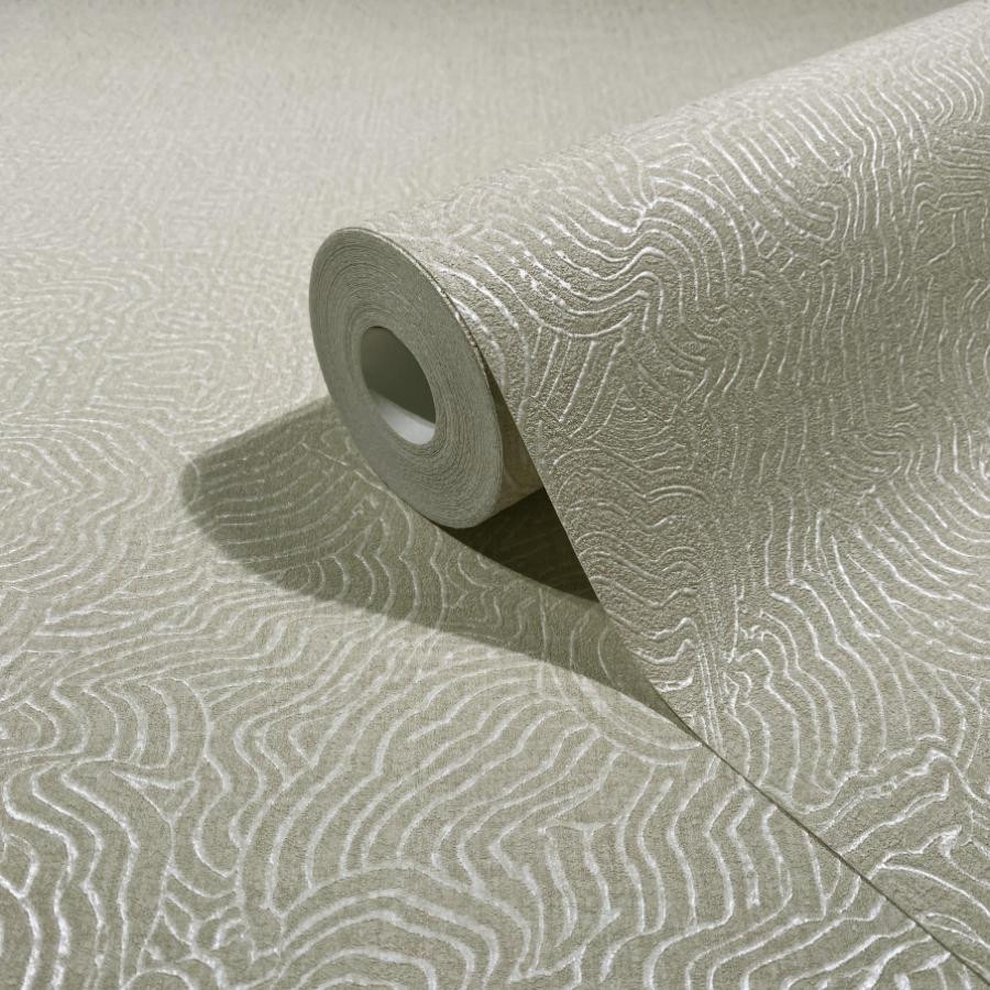 A tapéta felületén futó lágy, áramló vonalak dinamikát visznek a falakra, miközben a fény beesési szögétől függően változatos textúrahatást nyújtanak. Ez különösen látványos médiafal, ágy mögötti falrész vagy dekoratív nappali hangsúlyfal esetén.