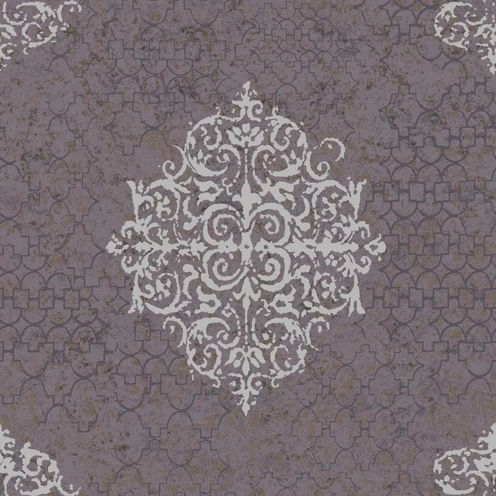 Prémium ornamentális mintás tapéta – elegáns vintage háttérrel lila-ezüst  színben