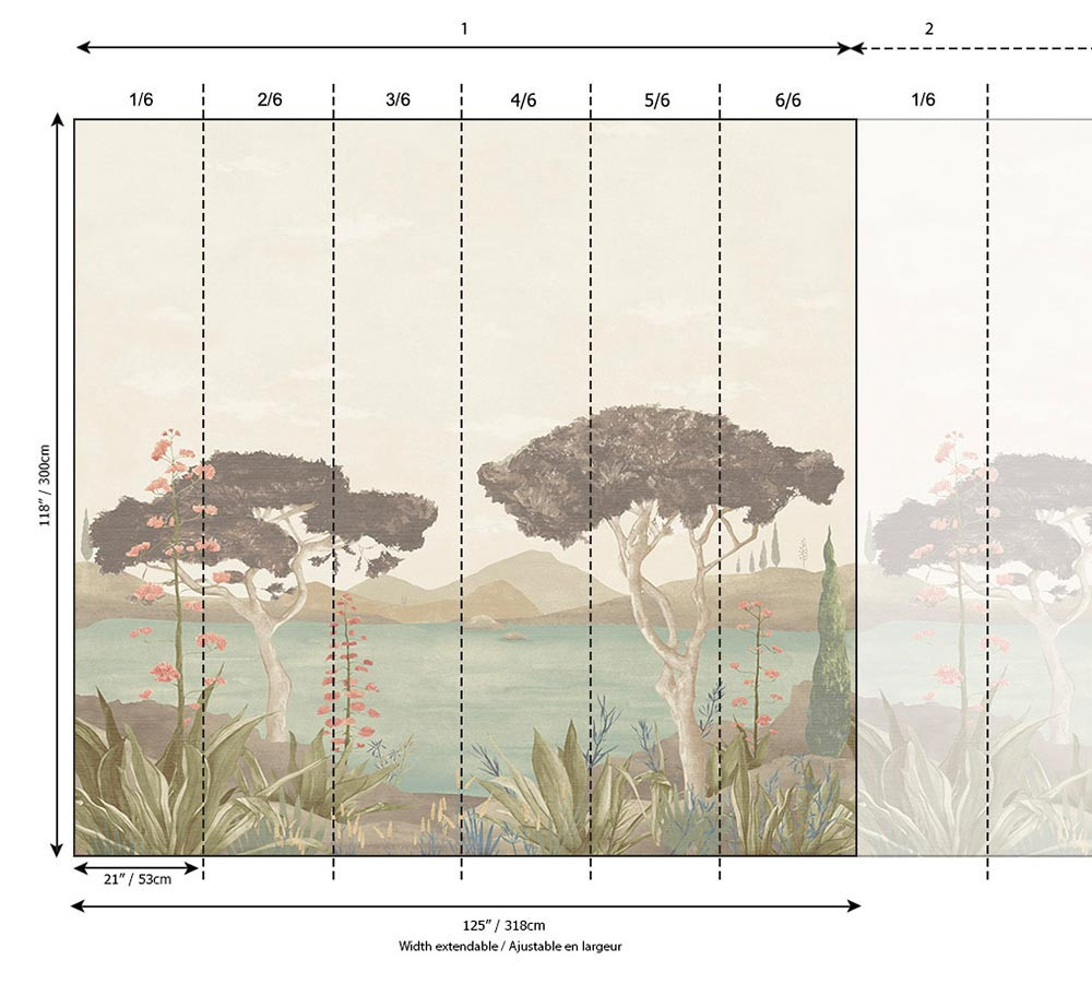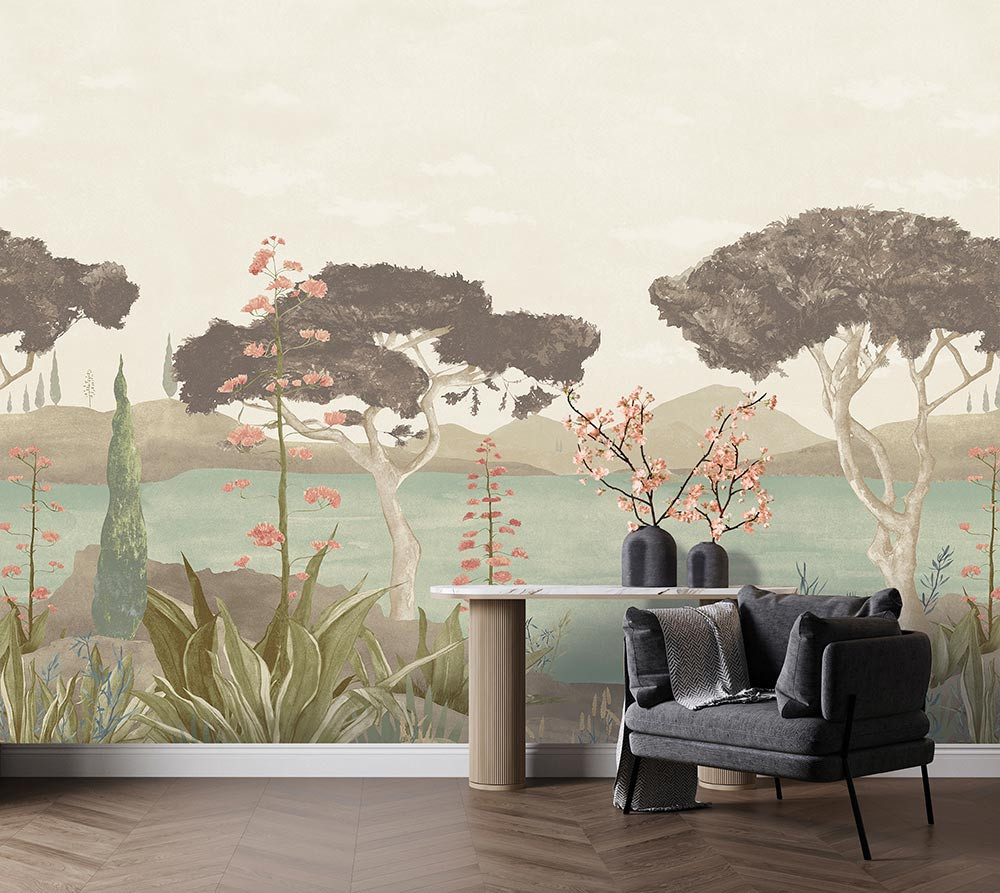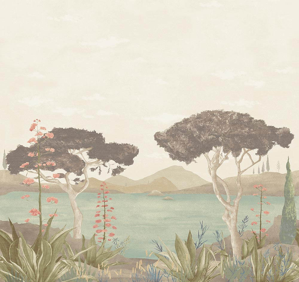 Ez a pasztell árnyalatú panorámás tájkép tapéta különleges designer falmural, amely festményszerű megjelenésével nyugodt, harmonikus atmoszférát teremt. A finom földszínek, lágy zöld tónusok és visszafogott rózsás részletek elegáns, természetközeli hangulatot biztosítanak.