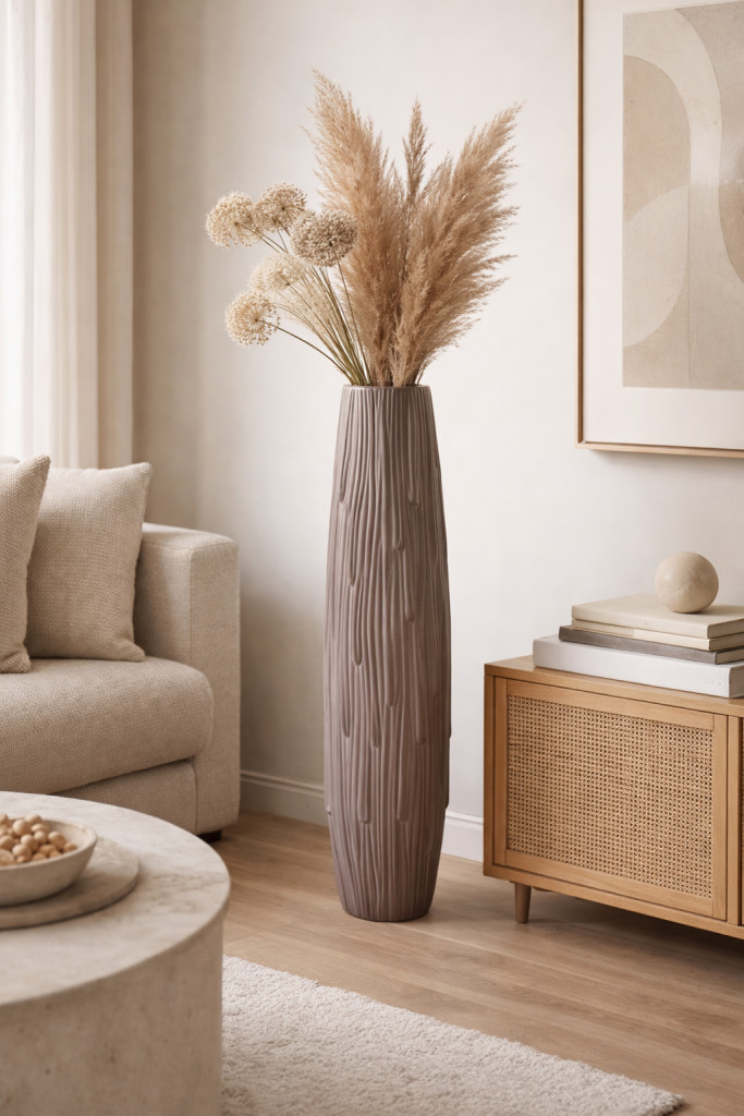 Stílusos, modern megjelenésű taupe színü magas padlóváza 20x78 cm