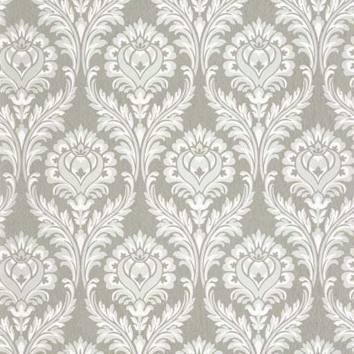 Szürke árnyalatú, klasszikus damaszt mintás tapéta, amely , elegáns és időtálló megjelenést biztosít.