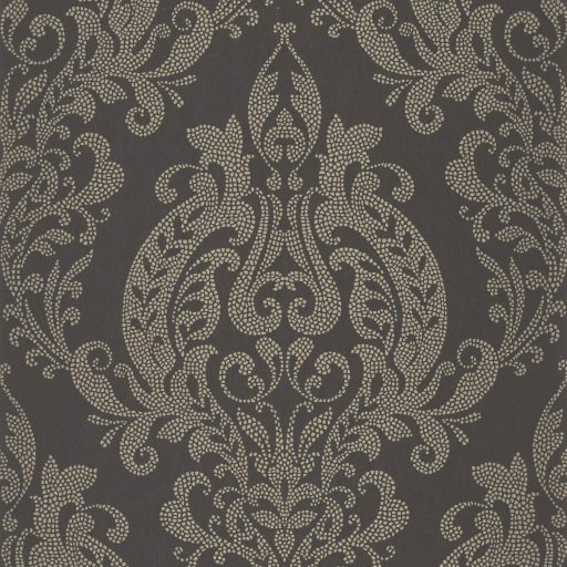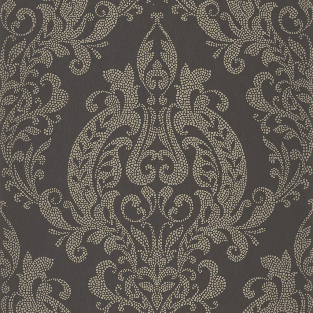 Szürke alapon arany tónusú, részletgazdag damaszt mintás tapéta, amely kifinomult és luxus hangulatot