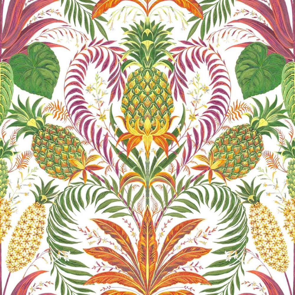 Látványos trópusi mintás tapéta ananász és botanikus növényi motívumokkal. Exkluzív faldekoráció, amely különleges és egzotikus hangulatot teremt nappaliban, étkezőben vagy hálószobában.