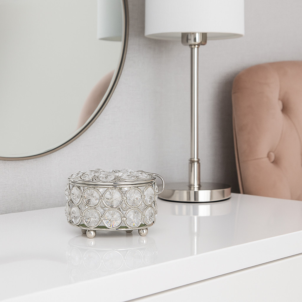 Üveg kristállyal díszített dekorációs doboz – praktikus és dekoratív ékszertároló a mindennapi használathoz.