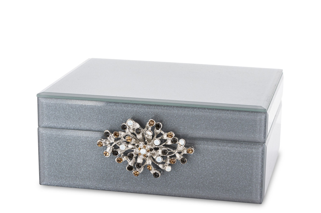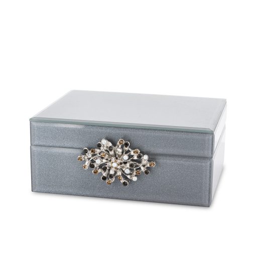 A(z) Elegáns, üvegből készült díszdoboz csillogó dísszel praktikus kialakításának köszönhetően segít rendszerezni kedvenc ékszereit. Esztétikus megjelenése miatt komódon vagy fésülködőasztalon is jól mutat. Anyaga: üveg. Stílus: Modern.