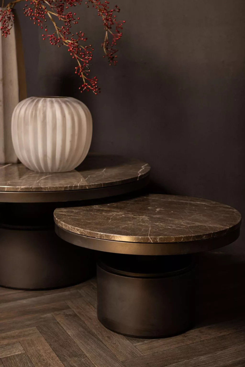 Kerek dohányzóasztal – Márvány lappal, sötétbarna fém talppal