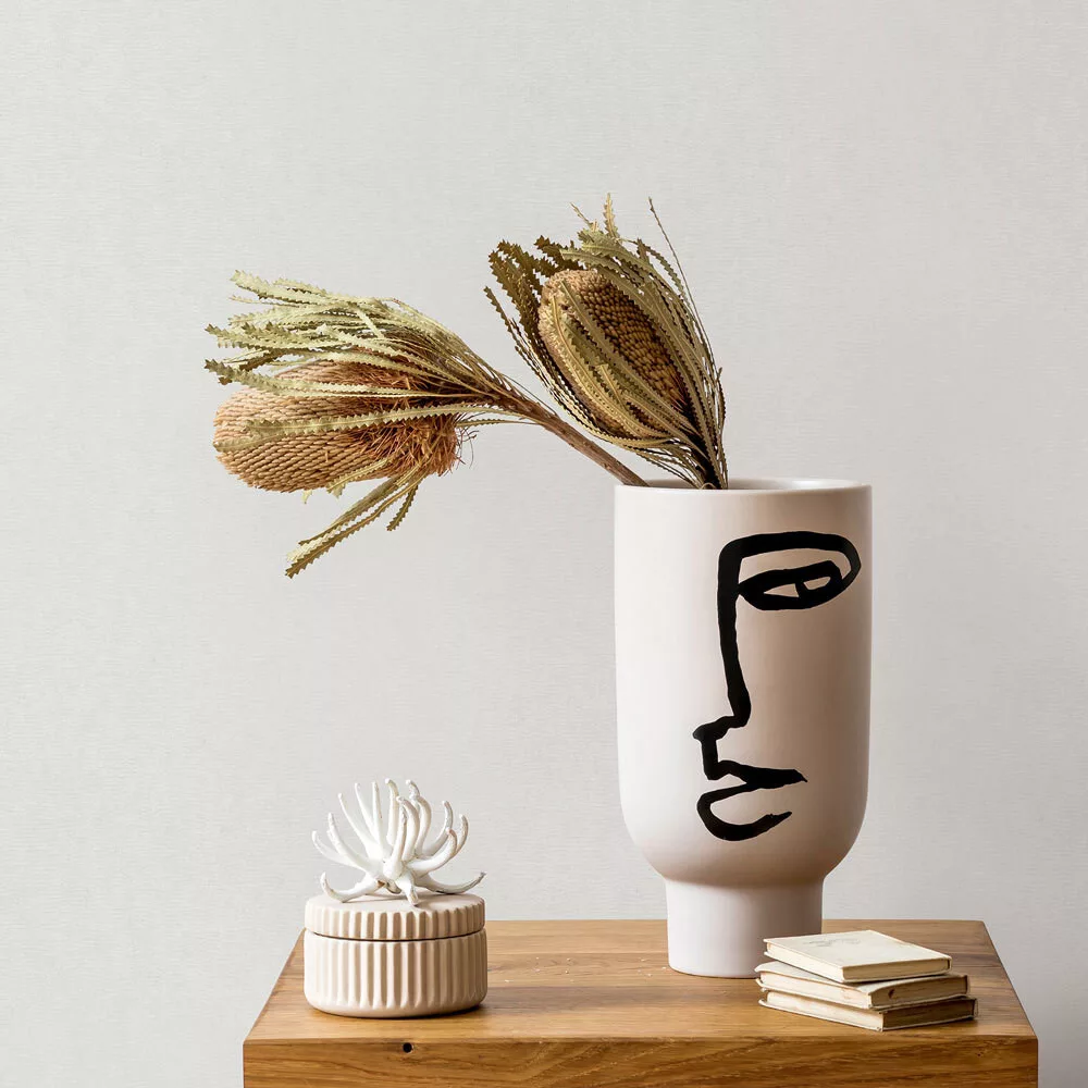 Így ideális megoldás például egy hangsúlyos levélmintás vagy geometrikus dekor tapéta mellé, ahol szükség van egy nyugodtabb, textúrált felületre.